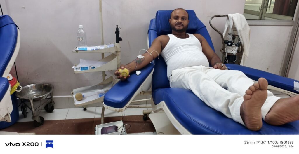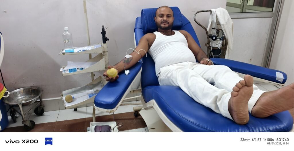 रक्तदान करते पत्रकार प्रशांत कुमार