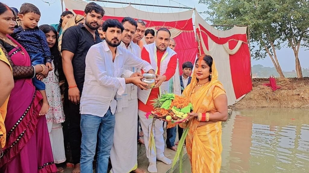 अर्घ्य अर्पण के उपरांत व्रतियों ने विधि-विधान से निर्जला उपवास तोड़ा और पूरे क्षेत्र में प्रसन्नता का माहौल देखा गया।