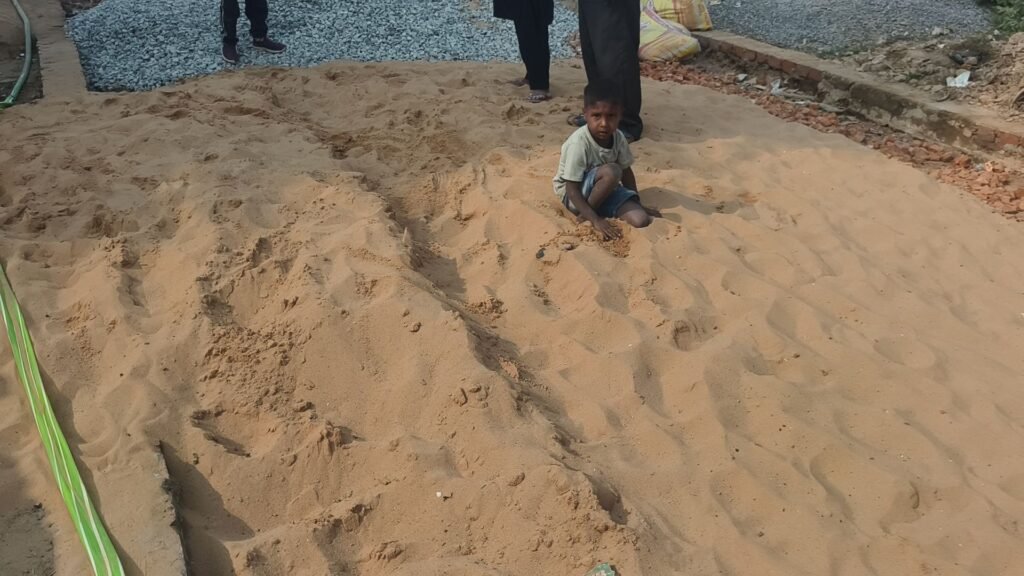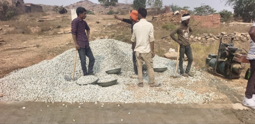 C.C. रोड में सफेद गिट्टी और मिट्टी वाली बालू! ग्रामीणों ने रोका काम
