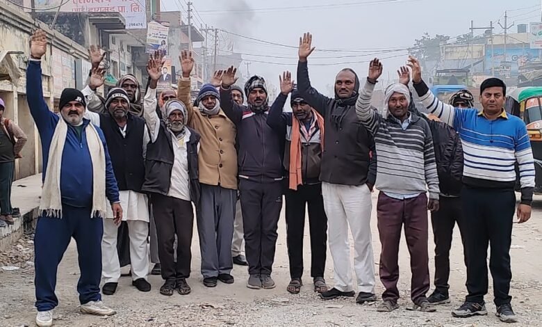 सघन तिराहा पर अलाव जलाये जाने की मांग को लेकर विरोध जताते हुए ग्रामीण व राहगीर
