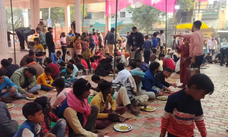 खिचड़ी महाप्रसाद वितरण कार्यक्रम में उमड़ी भीड़।