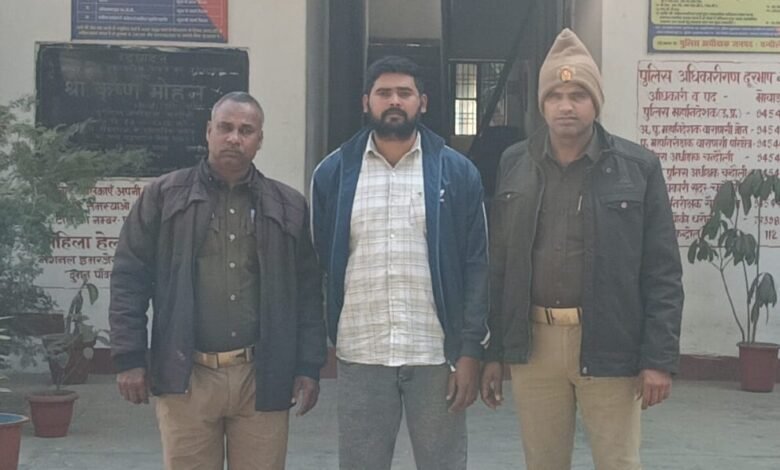 चंदौली सैयद राजा। पुलिस अधीक्षक चन्दौली आदित्य लांग्हे द्वारा अपराध एवं आपराधियों के विरुद्ध अंकुश लगाने हेतु वांछित अभियुक्तों के गिरफ्तारी हेतु दिये गये आदेश/निर्देश के क्रम में अपर पुलिस अधीक्षक अनंत चन्द्रशेखर (आई.पी.एस.) व क्षेत्राधिकारी सदर, देवेन्द्र कुमार के पर्यवेक्षण में प्रभारी निरीक्षक सैयदराजा, विन्देश्वर प्रसाद* के कुशल नेतृत्व में आज दिनांक 07.02.2026 को थाना सैयदराजा पुलिस द्वारा चेकिंग के दौरान मुखबिर की सूचना के आधार पर एनएच 02 हाइवे पर स्थित ग्राम जेठमलपुर, जेठमलपुर तिराहे के पास से मु0अ0स0-364/25 धारा 3/5ए/5बी/8 गोवध निवारण अधिनियम व 109/3(5) बीएनएस में वाँछित अभियुक्त आशुतोष सिंह उर्फ निक्कू पुत्र प्रहलाद सिंह निवासी ग्राम मथैला थाना बलुआ जनपद चन्दौली उम्र करीब 29 वर्ष को गिरफ्तार किया गया। गिरफ्तारी के आधार पर आवश्यक विधिक कार्यवाही की जा रही है।