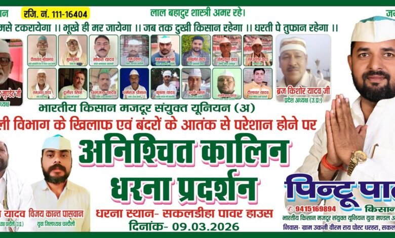 परंतु पिंटू पाल द्वारा दिए गए समय करीब आने के बाद भी अभी तक कोई ठोस पहल दिखाई नहीं दे रहा। जिसको लेकर पिंटू पाल ने बताया कि अगर 9 मार्च तक समस्या का निदान नहीं किया जाता है तो हम सभी किसान यूनियन द्वारा विशाल धरना देने का कार्य किया जाएगा और इस धरने का मुख्य उद्देश्य बंदरों के आतंक से छुटकारा दिलाया जाना होगा।